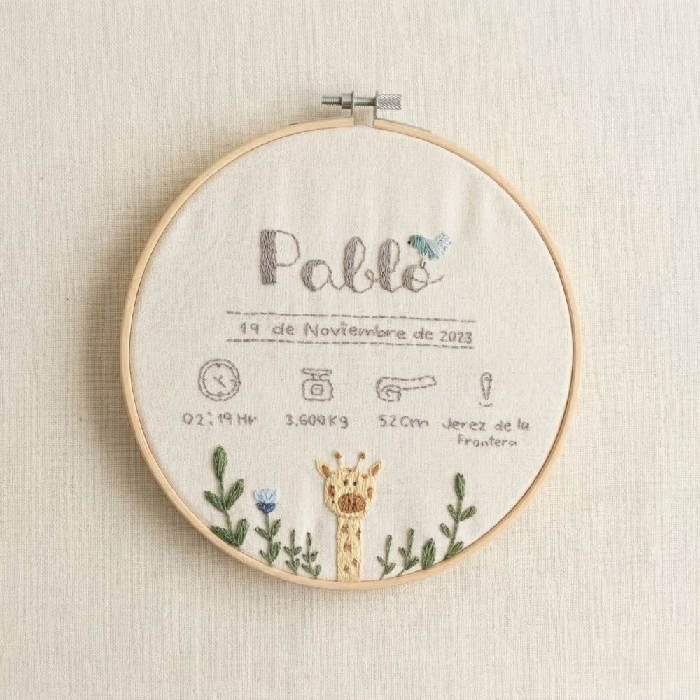 Este bastidor está hecho completamente a mano, con materiales de alta calidad y un diseño delicado que lo convierte en una pieza especial para decorar la habitación del recién nacido.