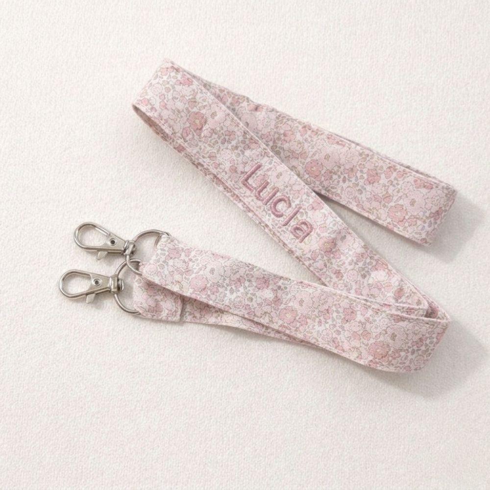 Cuelgamóvil hecho a mano con tela floral en tonos rosas suaves, pensado para acompañarte en tu día a día con un toque delicado y único.